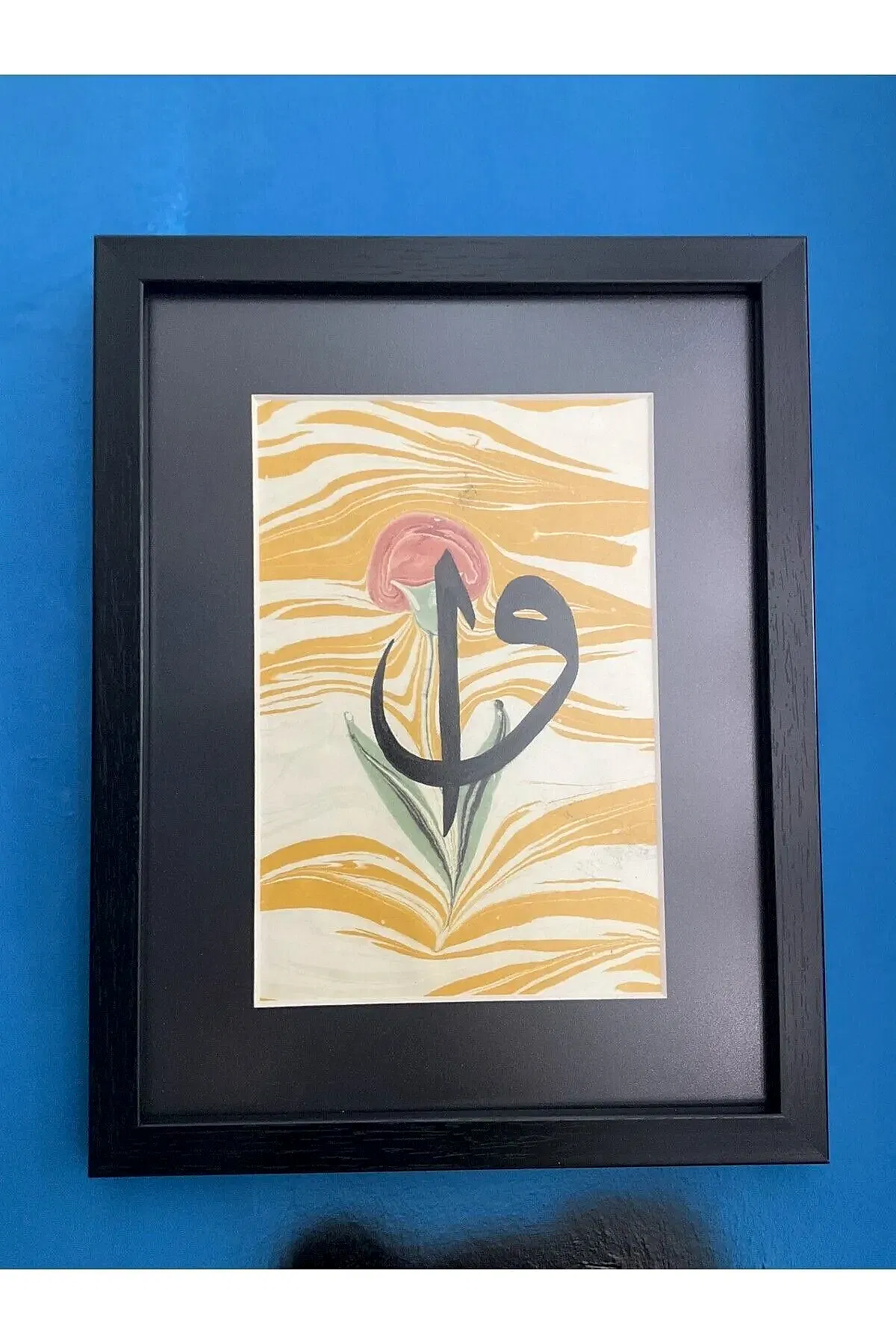 Ebru Sanatı ile Yapılmış Elif Vav Tablo – Siyah Çerçeveli, 27×21 cm