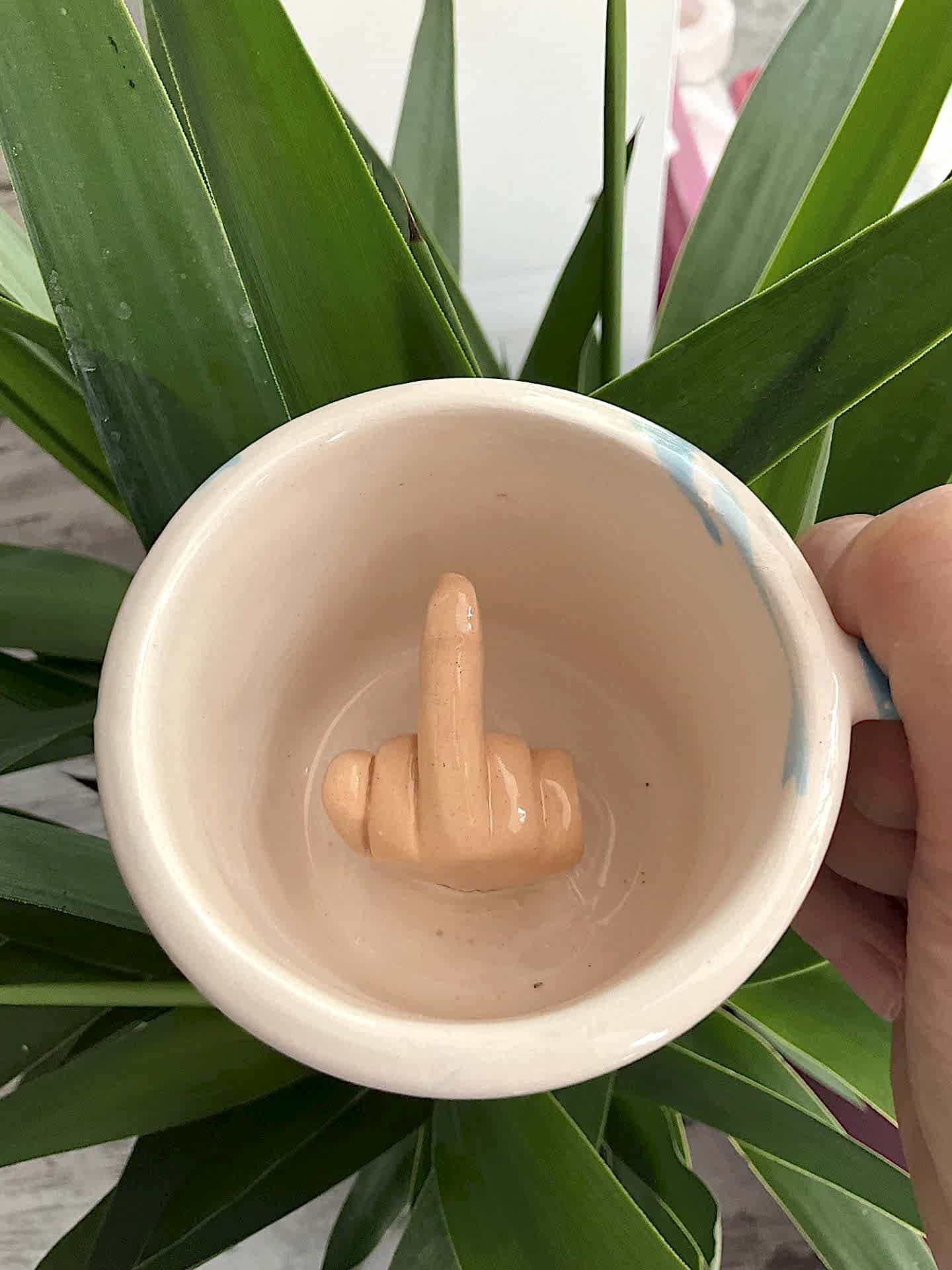 - 0rta parmak figürlü seramik kupa.