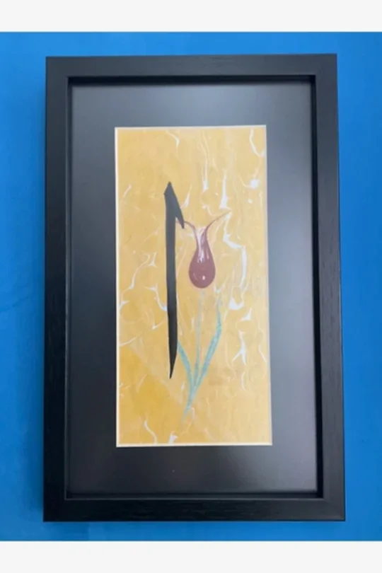 çini işleme sanatı ve fırça tekniğiyle yapılan bu çini Tablo, tamamen el yapımı ve baskı değildir. çini karo üzerine işlenmiş olan çini motifi, manevi bir anlam taşıyan zarif bir dekorasyon parçasıdır. Siyah çerçevesiyle modern bir görünüm sunar.